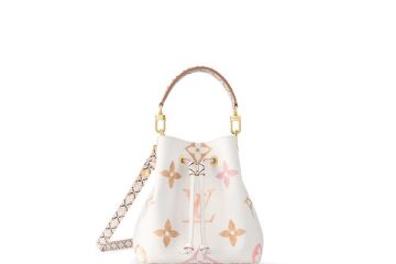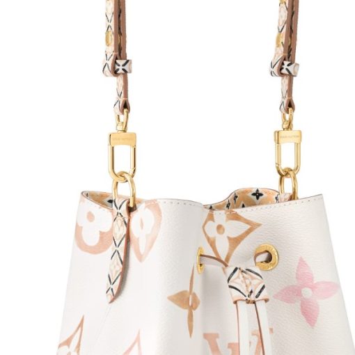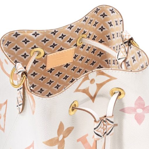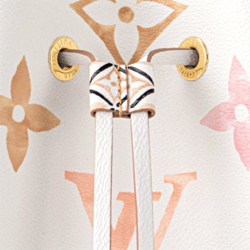 Cream-color canvas with a Giant Monogram print in pastel brings a resort vibe to this NeoNoé bucket bag. The Louis Vuitton’s and Monogram Flowers seem to be painted on the canvas in watercolor and explore soft nuances of tone. The NeoNoé closes with a drawstring. Inside there’s a central pocket with a press stud.