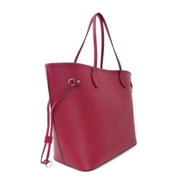 Description:Luxurious Epi leather makes the Neverfull MMsuitable for every occasion. Effortlessly practical, it is an ideal tote or thelaces can be tightened to create a more compact, chic city bag.Size:12.6 x 11.4 x 7.5 inches / 32cm x 29cm x19cm (Length x Height x Width)DetailedFeatures:– Smooth leather trim– Silver color metallic pieces– Calfskin and microfibre lining– Removable pouch attached to D-ring
